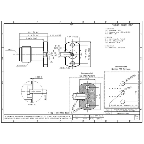 Vertical ランチコネクタ(F) マイクロストリップライン SMA