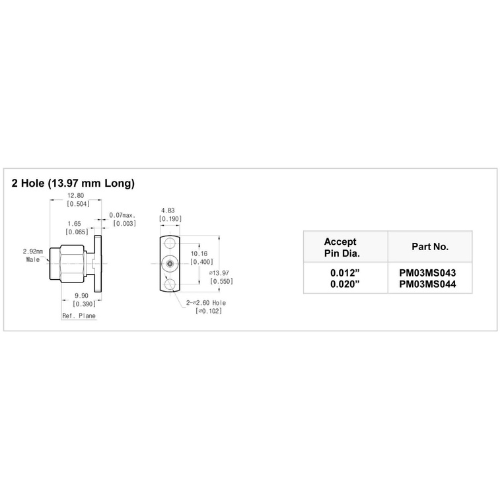 2.92mm(Male) / 40GHz/ 2 Hole,13.97 mm Long/Accept pin dia. 0.012inch 1-9個