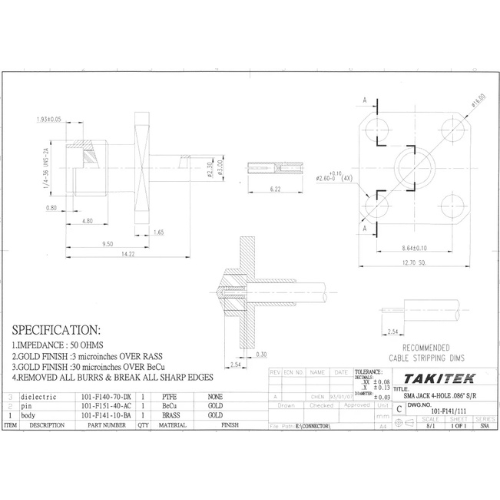 SMAコネクタストレート ジャック/141 セミフレキシブル・セミリジットケーブル用