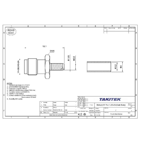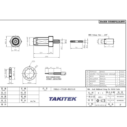 SMAコネクタ ストレートジャック ケーブル用(1.5DS, RG-316,RG-174, RG-188)