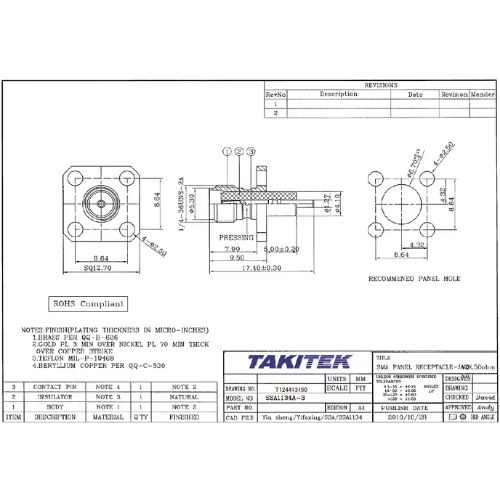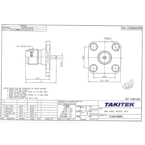 RSMAバルクヘッドジャック ソルダーポット 逆芯タイプSMA